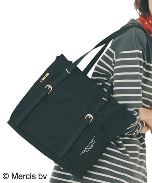 ミッフィーがちらり、オンオフ使える賢いバッグ。 大好きなミッフィーをお出かけの相棒に。 着こなしやシーンに合わせて持ち方を変えられる、大人にうれしい2-WAYバッグです。 たっぷり大容量のトートバッグからワンアクションでリュックに変身するので、自転車に乗るときや出先で荷物が増えたときなど、両手が使えてとっても便利。 カジュアルになりすぎないブラックのスクエア型なので、おしゃれして出かけたい休日はもちろん、お仕事コーデにも似合います。