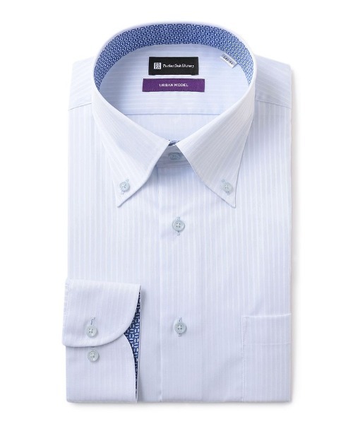 明るいカラーで爽やかにまとめ上げた長袖ボタンダウンシャツです。 織りで表現された主張の強すぎないストライプ柄が魅力。 袖口や襟の内側へ異なる生地をあしらって、さりげない遊び心をプラスしました。 清潔感のあるコーディネートが完成するアイテムです。 【商品のお気に入り登録がおすすめです】 お気に入り登録した商品は、最後の1点の通知、完売商品の再入荷、お得なお値下げ時にお知らせします。 【Perfect Suit FActory/P.S.FAのお気に入り登録がおすすめです】 PSFA新商品発売、再入荷や、セール情報など、お得なショップ情報を受け取ることができます。