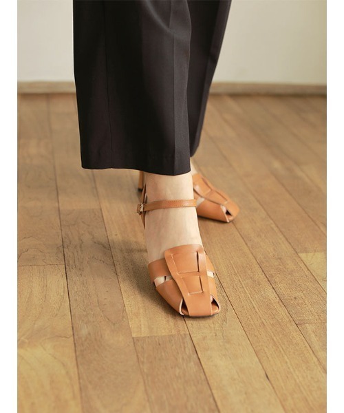 アッパーに甲を深く覆う メッシュデザインを施したミュールです。 ピンヒールデザインで 女性らしさがありながら、 ストラップデザインで 足首周りにも安定感もあり 、 履きやすさも兼ね備えた一足。 ストラップは引っ掛けタイプなので 着脱もしやすく、 素足での着用はもちろんのこと 靴下を合わせての着用もおすすめ。 ストラップは長さ調節も可能です。