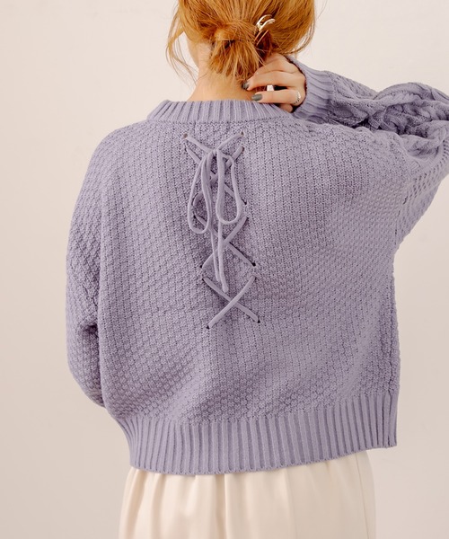 バックレースアップで後ろ姿まで可愛い愛されニット♪ ■デザイン ・後ろ姿まで可愛さ演出するバックレースアップニット ・程よい袖ボリュームで今年らしい1枚です◎ ・首元が開き過ぎないので上品な後ろ姿に♪ ・スカートでもパンツでも合わせやすく、1枚あると大活躍間違いなしのアイテムです。 ■スタイリング ・トレンドのマーメイドスカートで大人可愛く♪ ・デニム合わせでカジュアルに着こなすのも◎ ・気温に合わせてハイネックのインナーやチュニックシャツを入れて着るのもおすすめ! ---------------------------- 裏地:なし 光沢感:なし 透け感:なし 伸縮性:あり 生地の厚さ:厚手 ----------------------------- model:166cm ※引っかけ注意 ・粗い組織のものや、表面に凹凸があってルーズな組織のもの 表面に糸が浮き出ているものは、ちょっとした不注意から引っかけてしまいがちです 取り扱いの際は取り扱い絵表示確認の上、十分注意してください。 ・着用時にベルトや、バックや周囲の壁など表面の粗いものとの摩擦や引っかかりに注意してください。 ・水洗いやクリーニングの際にも他の物ものとの引っかかりに注意して下さい。 ※着用、お取り扱いの際は、商品についている品質表示とアテンションタグを必ずご確認下さい。 ※ご覧のモニター環境や撮影環境により実際の商品と多少色味が異なって見える場合がございます。 ご理解の程よろしくお願いいたします。 ■お気に入り登録のおすすめ 【気になるアイテムを登録】 ハートをクリックしてお気に入りに登録すると 完売カラーの再入荷やラスト1点の通知、セールの通知を受けとることができます。 【ブランドを登録】 新商品や再入荷、セール通知など、いち早くブランドの情報を受けとることができます。