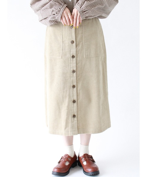 すっきりとしたシルエットが魅力のベイカースカート。ボタンデザインが縦ラインをメイクし、スマートな着こなしに。バックゴム仕様なので穿き心地が楽なのも魅力の1枚です。きれいめにもカジュアルにも相性のよい、デイリーユースにも活躍してくれるアイテムです。