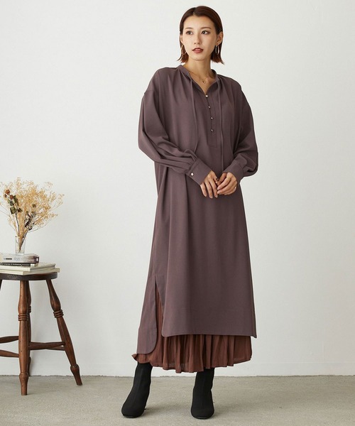 ドレープでキレイなシルエットのスキッパーワンピースとろみ+表情感のある上品な素材にギャザーやタックなど贅沢に入れ、ドレープでキレイなシルエットが素敵な大人顔ワンピース。鎖骨がキレイに見えるスキッパーデザインが女性らしく着こなして頂けます。襟元のリボンを軽く結んでも◎釦を1~2個はずして襟元を抜いてこなれ感を出すのも◎-----------------------------------------■透け感:なし■裏地:なし■伸縮性:なし(窮屈ではないです)■光沢感:なし■生地の厚さ:普通-----------------------------------------☆★お買い物をお楽しみいただく為に★☆★商品のお気に入り登録完売カラーの再入荷通知や、ラスト1点の通知、セールの通知も受け取ることができます。★ブランドのお気に入り登録新商品や再入荷等、ブランドのお得な情報をいち早く受け取ることができます。