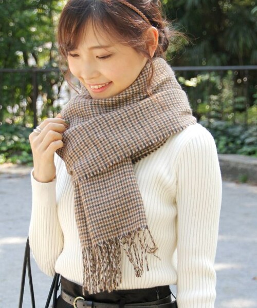 細かいチェック柄が大人っぽい印象のストール。 大きめのサイジングでボリューム感を演出してくれます。 フリンジがさり気なくアクセントに。 アクリル素材で柔らかく、チクチク感が苦手な方にも◎ マフラーとしてはもちろん、肩に羽織ったりひざ掛けとしても、 1枚で様々な使い方ができる万能アイテムです。