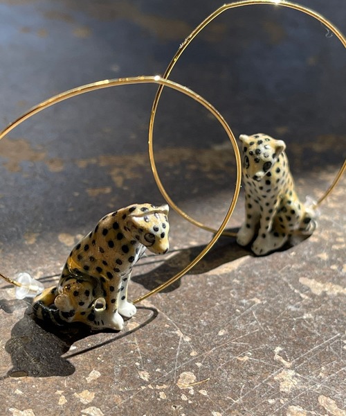 横を向いて座っているチーターが印象的なフープピアス。個性的なデザインですがちょっとしたポイントにしたい時、顔周りを明るくしたい時、人と被りたくない時にぴったり。好きな動物モチーフを身につけるだけでわくわくした気持ちに。人と差がつく「nach」のアクセサリーは一つは持っていたいアイテムです。《nach/ナッシュ》陶器のアニマルモチーフアクセサリーが人気のフランスのブランド。ポーセリンの「ミニチュアアニマル」製作において30年もの間世界的なリーダーとして認められているクリスチャン・コッシュの技術を、娘であるナンシーとナディア姉妹に託して生まれたアクセサリーブランド。素材作りから、動物達の表情作り、最後の仕上げまで全て手作業で行われています。見る人全てを笑顔にするたくさんのプロダクトを産み出し、ジュエリー界に新風を巻き起こしています。goodsimport
