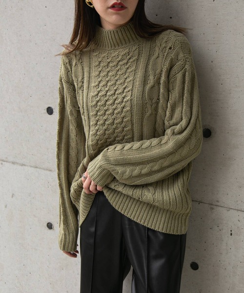 アラン柄がポイントに! この冬大活躍間違いなしのおすすめニット 【デザイン】 様々なケーブル編みで凹凸模様が特徴の アラン編みデザインを組み合わせた、1枚で様になるニット。 スッキリとボトムを選ばずご着用いただける バランスの取りやすさもポイント。 後ろも同様にアラン編みを施した贅沢な一着。 どの角度から見てもおしゃれにきまります。 コーディネートにプラスしやすいカラー展開で、 この冬大活躍間違いなしのアイテムです。 【素材】 アクリルのニットで、ざっくりとした編地が カジュアル感を演出します。 ふんわり柔らかく、あたたかい これからの季節にうれしい素材です。 【スタイリング】 1枚で主役になるアイテムなので、シンプルなデニムパンツと 合わせるだけで定番のカジュアルコーデが完成。 すっきりとしたシルエットのレギパンから、 ワイドめなパンツまで幅広いボトムとバランスが取りやすいです。 チェック柄などの柄物アイテムとも相性抜群。 もちろんスカートとの相性も抜群なので、女性らしくもご着用いただけます。 ※ご覧のモニター環境により、画像の色味と多少異なる場合がございます。 ----------------------------- 透け感:なし(オフホワイトはややあり) 生地の厚さ : 普通 伸縮性 : あり 裏地:なし 光沢:なし 洗濯:手洗い推奨 ----------------------------- ※詳しいお手入れ方法は商品タグをご参照ください。
