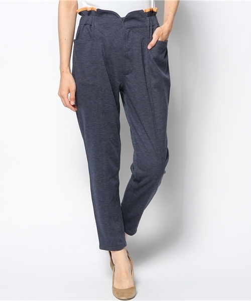 mystic(ミスティック) ウエストのパイピングがポイントのテーパードパンツ。トップスインのスタイルもお勧めです! 履き心地の良いスウェット素材で、抜け感のあるスタイルが完成します。