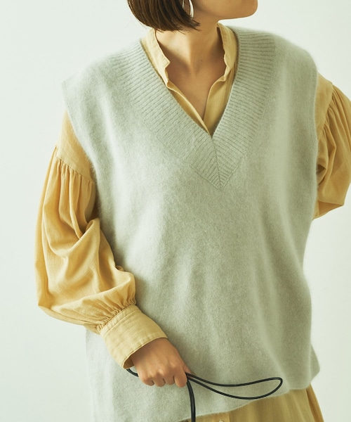 ふわふわとした風合いが心地良いベスト2021 AW毛足が長くふんわりとした素材感のベストが登場。今シーズントレンドのレイヤードスタイルが楽しめる注目のアイテムです。前後差のあるシルエットでバックスタイルはヒップが隠れる長めの着丈が嬉しい1着。カットソーやシャツはもちろんワンピースとのレイヤードで、秋冬のコーディネートが楽しくなる着回し自在のアイテムです。・一点投入で大人の抜け感とトレンド感をプラスしたスタイリングが完成・ずっと触っていたくなる柔らかな肌触りが魅力--------------------------------------------------------洗濯方法:ドライクリーニング透け感:なし裏地:なし伸縮性:ややあり--------------------------------------------------------*気になるアイテムは「お気に入り登録」を*気になる商品は、♡マークをクリックしておくと、スムーズにお買い物が楽しめます。・ラスト一点のお知らせ・再入荷のお知らせ・予約商品入荷のお知らせ・SALEのご案内#knitvest21AW