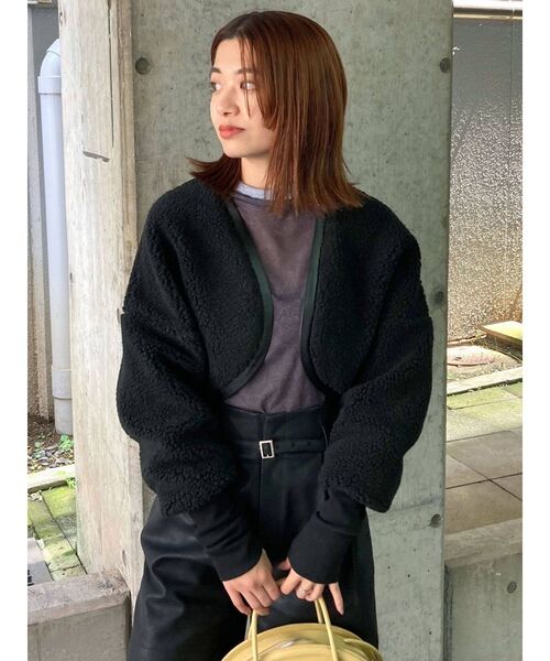 ■これ一枚でコーディネートの主役に■ ボアタイプのボレロは中々ないデザインで、コーディネートの主役になります! 手首がキュッと締まるシルエットで女性らしい1枚です。 ハイウエストボトムはもちろん、ワンピースとの相性もGOODです。 さらりと羽織りやすく、秋冬にピッタリのアイテムです! ※画像の商品はサンプルです。 実際の商品と色味、仕様、加工、サイズ、素材等が若干異なる場合がございます。 ---------------- 透け感:なし 伸縮性:あり 生地の厚さ:普通 サイズ感:普通 裏地:あり ---------------- 【トクする便利機能】 ♡商品のお気に入り登録 再入荷時、ラスト1点の時、セール開始時にお知らせします。 ♡ブランドのお気に入り登録 新商品や再入荷、セール情報など、ブランドのお得な情報を受け取ることができます。 是非ご活用ください!