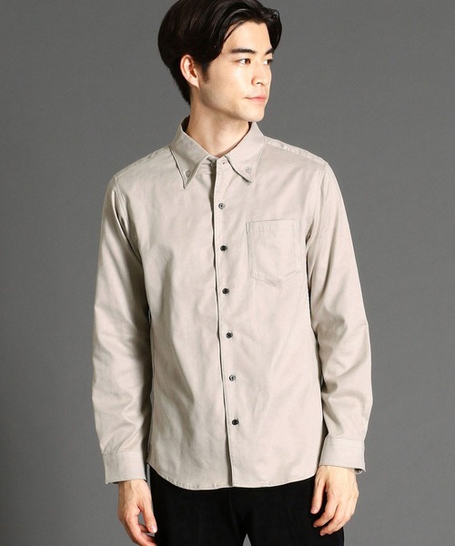 ナポレオンカラーの様にVゾーン栄えする台衿を高く見せたハイボタンダウンデザインで展開。衿端にワイヤーを流し込んでいますので、ボタンダウンとしてジャケットの中にも着れますし、衿先のボタンを外して衿を立てた、艶っぽい着こなしも可能です。ビジネスでもカジュアルでも幅広いシーンで着用頂けるアイテムとなっております。生地には薄手のストレッチスウェード素材を使用。軽くなめらかなタッチ、上品な光沢が特長。優れたストレッチ性もありますので、ストレスフリーな着心地を楽しんで頂けます。
