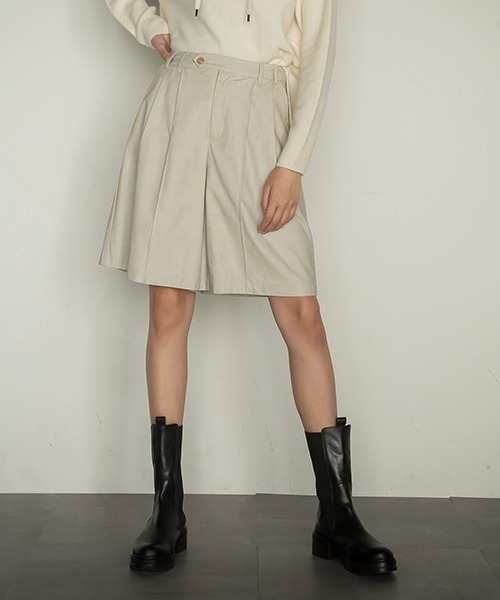 【socolla】 トレンドのハーフパンツはフェイクレザーで上品に仕上げました。 ウエストのタックでフレアなシルエットに仕上げ、膝丈にすることで大人女性にもマッチ。 ロゴトレーナーでカジュアルにも、抗菌ニットで綺麗目にも◎ 裾に向かって広がるフレアシルエットはヒップにゆとりを持たせ、視覚効果でウエストがシャープに脚を華奢に見せてくれます。 【素材の特徴】 表面マットで柔らかいフェイクレザー素材。 裏面は微起毛だから裏地が無くてもは気心地抜群。 ---------------------------------- 洗濯方法 家庭洗濯:家庭での洗濯禁止 アイロン:底面温度110℃を限度としてアイロン仕上げができる。 ドライクリーニング:石油系溶剤による弱いドライクリーニングができる。 ---------------------------------- ■モデル身長 171cm/着用サイズ M ※画像の商品はサンプルとなりますので実際の商品と仕様、加工、サイズが若干異なる場合がございます。 ※お客様のモニター環境により実際のお色と多少異なる場合がございます。 ※撮影状況や光の当たり具合により、色合いが異なって見える場合がございます。 【socolla】 Just the way she is... 特別なサプライズがなくても、遠くへ旅行しなくても いつでも日常の中の素敵なシーンで輝けるようにリラックス感を保ちつつ、 けっしてラフ過ぎない 「今どき感」「女性らしさ」のあるワンマイルウェアを展開。 「飾りすぎない自分らしいスタイル」を好むナチュラルな女性たちへ送る、socolla スタイル。