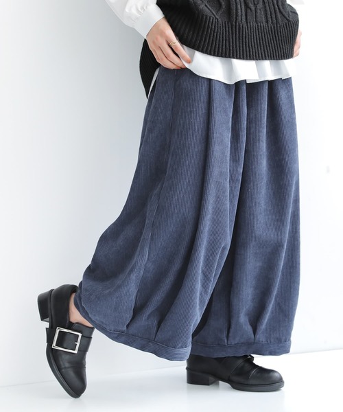 コクーンシルエットのコーデュロイボリュームパンツ。ウエストと裾部分のボックスタックですっきり魅せが実現します。ヴィンテージライクなコーデュロイ生地はやや薄手の生地感。これからの季節に最適な穿き心地です。バックウエストゴム仕様だから楽に穿けてお洒落に決まるのも嬉しいポイント。ラフにお洒落な絶妙シルエット≪n'OrLABEL≫タックボリュームコーデュロイパンツです。