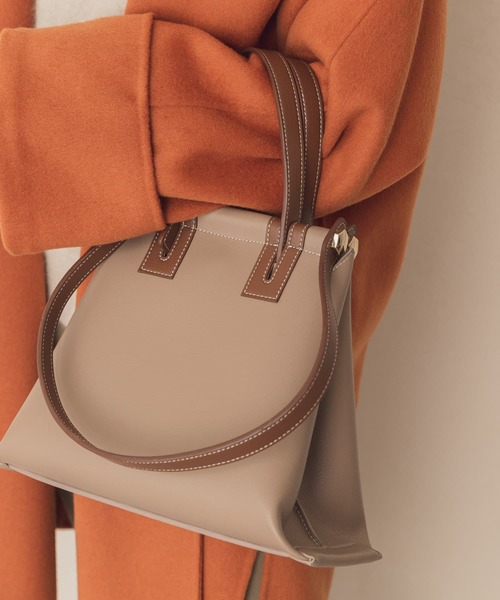 3WAYで使用可能!バイカラーが目を惹くデザインバッグ 持ち手や金具の使用有無で印象の変わる3WAYのデザインで、遊び心がたっぷりな1点。型崩れのしにくいやや固めの素材が上品な印象で、カジュアルにもキレイ目にも合わせて頂けます。 マチが広いので、収納力も抜群。 見た目以上に使いやすいカラーリングもオススメのポイントです。 ※現在の技術水準では、自然光および照明等により通常の使用でも若干の変退色はさけられません。ご了承ください。 ※雨や汗などによる濡れた状態での使用は、色落ちや色移行の原因となる場合がありますので十分ご注意ください。 ※その他お取り扱いに関しましては、商品に付属のアテンションタグをご覧ください。 総重量 : 約440g ※商品画像は、光の当たり具合やパソコンなどの閲覧環境により、実際の色味と異なって見える場合がございます。予めご了承ください。 ※商品の色味の目安は、商品単体の画像をご参照ください。