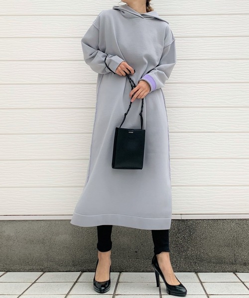色の組み合わせが可愛いバイカラーのニットワンピースです。 すっきりと見えるシルエットでオトナなカジュアルワンピースに仕上げました。 裾サイドにスリットを入れ、足さばきのスムーズさも◎ フード部分は立つように、フロントに重なりを作りました。 アウトリンキングでカラーがさりげなく見えてアクセントに。 袖裏も配色にしているので、捲って見せて着るのもおすすめです。 素材について 立体的なデザインと、軽さ、糸のふくらみのある風合いを表現するため極細のポリエステル繊維まとめた繊細な糸を使用しています。 その為、引っかかりやすい性質を持っています。着用の際はご注意ください。 また、いくつもの糸を束ねているため空気の層ができ保温効果も期待できます。 《インフォメーション》 ◆商品のお気に入り登録 完売していても再入荷時に再入荷通知を受け取ることができますので、是非ご登録ください。 ◆ブランドのお気に入り登録 新商品や再入荷などの情報を受け取ることができますので、是非ご登録ください。