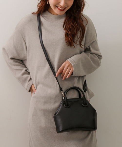 がま口のデザインがトレンドライクなミニボストン。 ・ コロンとしたフォルムが可愛い2WAYミニボストンです。 ・ 艶感が控えめなので、どんなシーンでもお使いいただけます。 ・ 持ち手部分がしっかり自立するのも高見えするポイント。 ・ カジュアルからフェミニンまで幅広いスタイルに合わせやすいデザインです。 ・ 気分に合わせてショルダーを取り外すことも◎ ・ 小ぶりなのにマチがしっかりあるので、見た目以上の収納力。 ・ 内側に、オープンポケットが1つあり、小物もしっかり収納可能! ・ 口枠タイプで大きく開いて使いやすい。 サイズ 横幅: 上 13 cm 下 20.5 cm 高さ: 17.5 cm マチ: 8 cm ショルダー: 67 cm ~ 123 cm 持ち手高さ: 9 cm 素材 合成皮革 仕様 開閉: がま口 内側: オープンポケット×1 重さ 約 396 g 生産国 中国