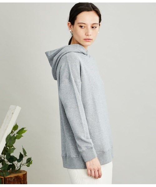 着心地の良さにこだわった裏毛 ■素材 アズマ編機で編み立てたスビンコットンの裏毛素材。凸凹感のある表面と厚手でしっかりとした手持ち感ながら、ふっくらとした柔らかさのある風合いが特徴です。伸縮性もあり、スヴィンコットンの滑らかな風合いを十二分に生かした着心地の良い裏毛素材に仕上がりました。程よく目の詰まった裏毛は、肉感があるので暖かく、秋から冬にかけて長いシーズンお召しいただけます。 《編み》和歌山県和歌山市 ※アズマ編機…70年代初期の編み機の一つで、現存数が少ない希少な旧式の編み機。吊り編み機のようなヴィンテージ特有の横段の走る表情が特徴。ゆっくりと編む為1日に編めるのは生産量がわずかですが、その分ふんわりと柔らかな生地に仕上がります。 ■デザイン チュニック丈でリラックス感のあるフーデッドパーカ。ドロップショルダーでリラックス感のあるシルエットは、アズマ編機で編んだ柔らかな素材とよくマッチします。またすっきりとした見え感ながらも、実用面で使い勝手の良いポケットを脇に施しました。杢グレーは、裏毛で一般的に使用するオフホワイトの中糸をあえて使用せず、ライトグレーの中糸で繊細な杢を表現しました。 ■同素材のアイテム ・モックネックスウェット(37-81-3103) ・フーデッドZIPアップパーカ(37-83-3103) ■カラー 杢グレー(03)・ブラック(05)とアイボリー(32)の3色展開。 ■シーズン 2021年秋冬商品 ─────────────── 裏地:なし 透け感:なし 生地の厚さ:厚い 伸縮性:あり ───────────────