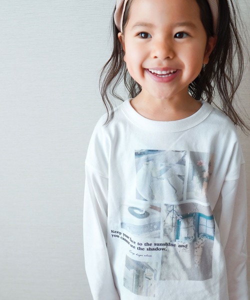【デザイン】お洒落なフォトプリント。色合いもプリントも大人っぽいデザインで親子リンクコーデなんかもしやすいロンTです◎形はやや肩落ちシルエットで脇裾にスリット入り。シンプルコーデでクールに決めて♡男女問わないデザインなのでお揃いコーデもしやすいですよ♪*80、90サイズのみ左肩にボタンがついており、脱ぎ着がしやすくなっております。【素材】ややしっかりめの目の詰まった生地感です。本体綿100%なのでお手入れもしやすく着心地も◎*こちらのベビーサイズ商品(80cm,90cm)は、全てホルマリン含有率の検査を通っておりますのでご安心下さい。********************透け感:ややあり伸縮性:あり生地の厚さ:普通******************** 【SUNDAYS SUN サンデイズサン】太陽のふりそそぐ日曜日、お気に入りの洋服で家族とおでかけ。思い出を閉じ込めた写真には、いつも「SUNDAYS SUN」といっしょ。毎日が元気いっぱいになる、そんな子供服を提案します。