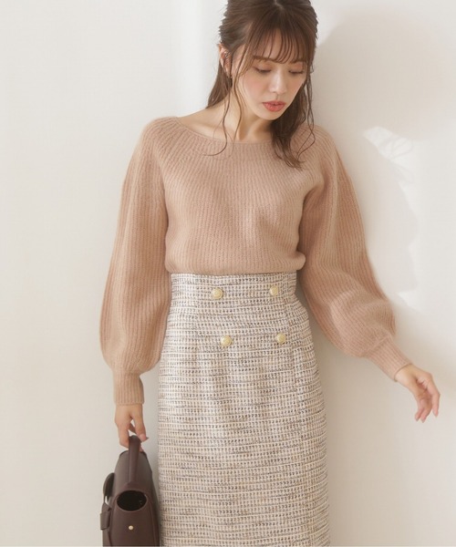 【商品特徴】ほどよくルーズなシルエットとボリュームスリーブが可愛らしいニットです。 デコルテラインを綺麗に見せるボートネックもポイントです。 ふわふわのニット素材に上品なラメ糸を織り込み、 冬のニットスタイルをよりフェミニンな印象に。 【スタイリング】 ハイウエストのタイトスカートと合わせるとスタイルアップ見えを叶えてくれます。 <商品のお気に入り登録> お気に入りアイテムの値下げ・再入荷・在庫1点などの通知を受け取ることができる 便利機能ですので気に入ったアイテムはお気に入り登録がおすすめ! <ショップのお気に入り登録> 新商品や再入荷、セール、クーポン配布などお得な情報を受け取ることができます。 ●撮影はサンプル商品で行っている為、仕様とサイズが異なる場合がございます。 ●スタジオ及び屋外で撮影した着用画像は、光の当たり具合で色味が違って見える場合があります。予めご了承ください。