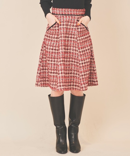 ◆◆2021Autumn/Winter Collection◆◆定番のオリジナルツイードスカート。例年よりフレア分量が少し少なめですっきりとしたAラインのシルエットに仕上げました。可愛くなりすぎない大人上品なシルエットなので幅広い方に着用していただけます。※サイズ表記につきましては、商品によって同サイズや同色等であっても各商品毎に誤差が生じる可能性がある為、サイズ表記はあくまでも目安としてご参照ください。※モデル着用アイテムはサンプル商品の為、実際よりサイズや色が異なる場合がございます。サイズはサイズ詳細等にてご確認下さい。※モデル着用カラーは、撮影環境の兼合いにて、実際のカラーと異なって見える場合がございます。商品カラーに関しましては、物画像をご参考に確認をして頂ければと思います。※取り扱いについては、商品についている品質表示でご確認ください。※商品画像はサンプルのため、色味や仕様変更がある場合がございますので予めご了承ください。※画像と柄の位置が異なる場合がございます、ご了承下さい。※照明の関係により、実際よりもやや明るく見える場合がございます。またパソコンなどの環境により、若干製品と画像のカラーが異なる場合もございます。予めご了承ください。