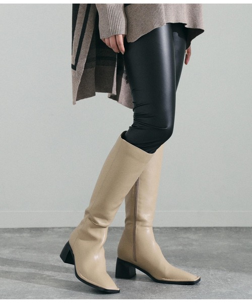 ミニボトムと好適なロングブーツ。 シャープさを印象づけるスクエアトゥ、艶めきのあるフェイクレザーで足元に大人な雰囲気を漂わせます。 内部にはほのかにクッション性を持たせ、締めつけを感じにくく快適に履きこなせます。 <サイズ> S・22.5cm~23.0cm M・23.5cm~24.0cm L・24.5cm~25.0cm ※密着させておきますと移染しますのでお取り扱いにはお気を付けください。 ※商品のお取扱いに関しましては、商品に付属のアテンションカード、洗濯ネームをご覧ください。 ※モデル着用画像は光の当たり具合で色味が違って見える場合がございます。 ※商品の色味の目安は、商品単体の画像をご参照ください。 【お買いものをお楽しみいただく為に!】 ▼商品のお気に入り登録 完売カラーの再入荷通知や、ラスト1点の通知、セールの通知も受け取ることができます。 ▼ブランドのお気に入り登録 新商品や再入荷など、いち早くブランドのお得な情報を受け取ることができます。