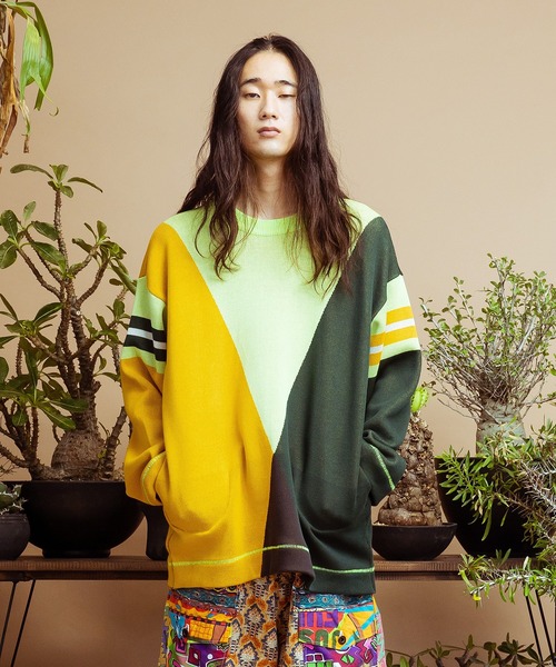※多数のリクエストをいただき少量追加生産決定!※限定数に達し次第終了とさせていただきます。5色の糸を使用した”絵具を載せるパレット”の様なカラフルな12Gのコットン100%のニットです。身頃と袖の左右アシンメトリーな配色と直線的な配色デザインが絶妙なバランスを生んだアイテムです。袖口と裾はデザインカラーステッチを入れております。コットンニットなのでトレーナー感覚で扱って頂けます。日本人メンズモデル SIZE①を着用身長175cm バスト78cm ウエスト67cm ヒップ89cm外国人メンズモデル SIZE②を着用身長177cm バスト85cm ウエスト79cm ヒップ92cm 女性モデル SIZE①を着用身長160cm バスト85cm ウエスト65cm ヒップ88cmmasterkey洋服の価値が見いだせない時代…解いて、切って、縫って、思案し、又縫って…パズルの様に過去と現在をクロスオーバーさせNew vintageを構築していくmasterkey。自社生産だからこそ派生する”人の手から生み出される温もり””CRAFT感のあるITEM”時がたっても色褪せないwardrobeを創造。ハリスツイードの生地やミリタリーアイテムなどの古着を使用したリメイクアイテムや、ビッグシルエットのアイテムやジャージのセットアップアイテム、ロングコートやスタジャン、スカジャンモチーフもラインナップ。ビンテージのストールを使用したサスティナブルなアイテムも。人気のオマージュシリーズの新作も登場。