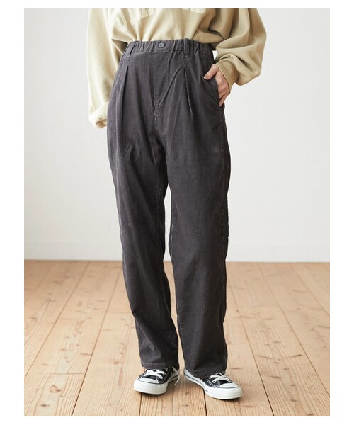 秋冬コーデの着こなしにピッタリのコーデュロイ素材のパンツです。 細すぎず太すぎないシルエットで着まわせること間違いなし◎ 身体のラインを拾いすぎないルーズ感で抜け感をプラスします。 暖かいボトムだから季節感のある着回しが出来ます。