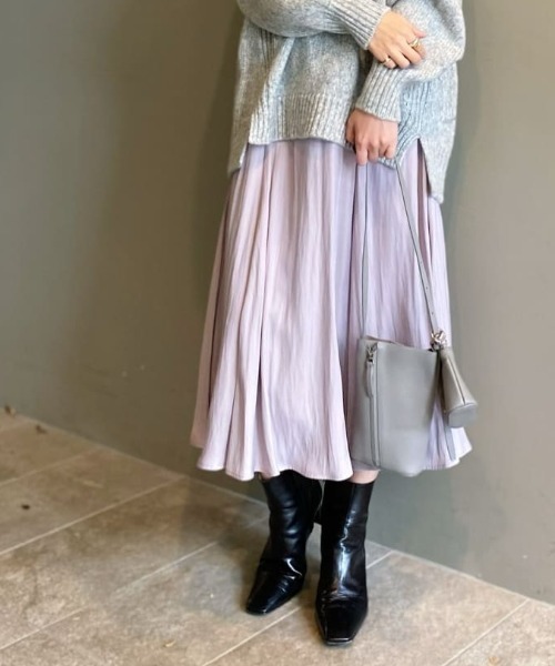 【オンオフ問わず着回せる】フレアシルエットが華やかさを演出●デザイン独特が表面感と滑らかな風合いのギャザースカート。ウエストは総ゴム仕様でドロストテープ付きなので、リラックスした履き心地の一枚。ハギを入れることで、ヒップ周りのボリューム感を抑え綺麗なシルエットを演出しています。軽くシワの目立ちにくい素材感と、イージーケア性も嬉しいポイント◎●おすすめコーディネートニットからブラウスまでどんなスタイルにも上品さをプラスしてくれる1枚。●素材表地:ポリエステル100%裏地:ポリエステル100% ・軽くシワの目立ちにくい素材感洗濯方法:手洗い透け感:なし裏地:あり伸縮性:なし生地の厚さ:やや薄手光沢:ありポケット:なしファスナー:なし【スタッフ着用コメント】《natsu》身長:153cm/着用サイズ:F総ゴムで中に紐がついているので、ウエストは調整できます。ヒップ周りなどスッキリ見えるのは魅力的。歩くたびに優しくゆれるフレアシルエットです。==============================【注意点】※画像の商品は光の照射や角度、お使いのモニター環境により、 実物と色味が異なる場合がございます。 あらかじめご了承下さいませ。==============================【お買い物をもっと便利に楽しく♪】『♡』をクリックでお気に入り登録・「商品のお気に入り登録」で・・・ラスト1点や再入荷の通知が届きます。登録して頂いた商品だけが対象となる、あなただけのタイムセールが開催されることも!・「ブランドのお気に入り登録」で・・・新商品や再入荷など、いち早くブランドのお得な情報を受け取ることができますので、ご登録をおすすめします! ==============================