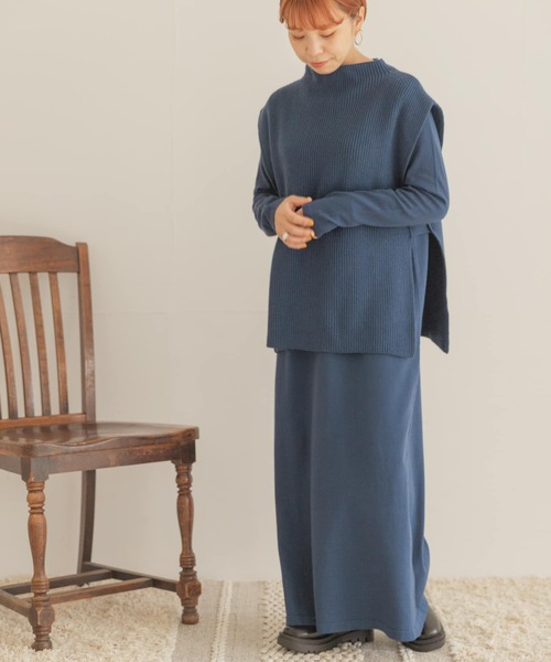 ハイネックのニットベストとクルーネックのロングワンピースをレイヤードさせたセットアイテム。ベストはサイドにざっくりとスリットを施したこだわりのディテールがGOOD♪ワンピースもシンプルで着回し力があり、パンツやロングスカートを重ねてもオシャレに決まります◎厚手すぎず薄手すぎない、今からの季節にピッタリのアイテムですよ! [ベスト] FREE : 肩幅48cm / 総丈65cm / 身幅46cm ※この商品は、素材の特性上ピリング(毛玉)ができやすいので、連続着用はお避けください。毛玉ができた場合は、毛玉取り器やはさみなどでお手入れください。 ※洗濯・クリーニングの際には裏返してネットをご利用ください。 ※その他お取り扱いに関しましては、商品に付属のアテンションタグをご覧ください。 ※商品画像は、光の当たり具合やパソコンなどの閲覧環境により、実際の色味と異なって見える場合がございます。予めご了承ください。 ※商品の色味の目安は、商品単体の画像をご参照ください。 ----------------------------- 透け感:なし 伸縮性:あり 裏地:なし 光沢:なし ポケット:なし -----------------------------