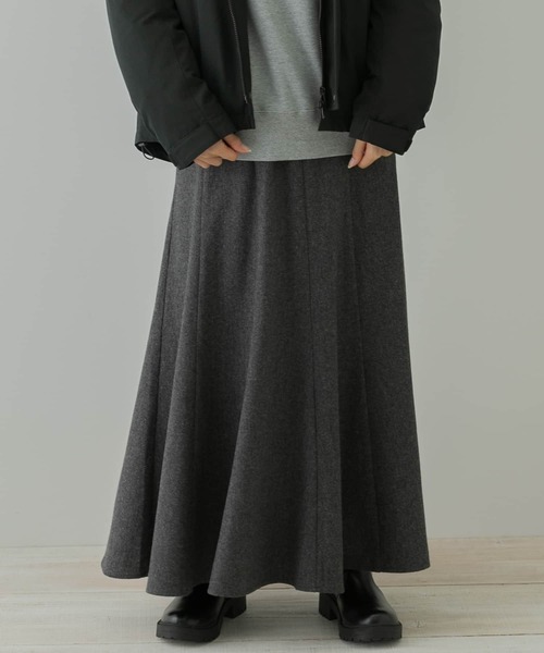 秋冬にの定番ツイード素材を使用したマーメイドスカート。ウエストまわりがすっきりした綺麗なシルエットながらゴム仕様になっているので着心地も良く、シンプルなデザインが着回しの効く一着Aラインになっているので女性らしいスタイリングはもちろんロゴスウェットを合わせたカジュアルコーデもおすすめです◎※繊維の表面が着用中にこすられたりすることで毛玉ができやすくなっておりますので、お取扱いには充分ご注意ください。毛玉ができた場合は、毛玉取りやはさみなどでお手入れをお願いします。※商品画像は、光の当たり具合やパソコンなどの閲覧環境により、実際の色味と異なって見える場合がございます。予めご了承ください。※商品の色味の目安は、商品単体の画像をご参照ください。-----------------------------透け感:なし伸縮性:なし裏地:あり光沢:なしポケット:あり-----------------------------