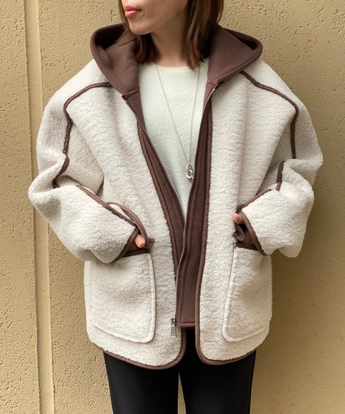 ◆ZOZOTOWN限定アイテム◆ ●デザイン やわらかい着心地のボアブルゾン。 もちもちとした質感が魅力です。 パーカーとボアコートの重ね着風デザインで、カジュアルな印象に◎ スリーブとバック、裾にハイピングが施されてあるので、着ぶくれしがちなボアブルゾンもすっきり着ていただけます。 大きめのポケットもうれしいポイント♪ 中に着込めるよう少しゆったりめのサイズ感でご用意しているので、これからの季節に大活躍! ●おすすめコーディネート スカートで合わせると大人カジュアルなスタイルに♪ ベーシックなカラー展開なので、合わせやすくコーディネートの幅も広がります◎ ●素材 ポリエステル100% 別布部分:コットン70% ポリエステル30% 洗濯方法:手洗い 透け感:なし 裏地:なし 伸縮性:ややあり 生地の厚さ:厚手 光沢:なし ファスナー:あり 【スタッフ着用コメント】 《rin》 身長:156㎝/普通/普段サイズ:M/着用サイズ:F やわらかくて軽いので、着心地がとても良いです。 着ぶくれが気になるボアアイテムですが、ステッチが入っていので、 すっきり着れるのもうれしいポイント♪ パーカーとのレイヤードデザインが中々なく、トレンドアイテムですが他と差がつきます! 【I'm Shelly(アイムシェリー)】 RIVE DROITEのセカンドライン「I'm Shelly」は、 ZOZOTOWNでしか出会えないWEB限定コレクション。 ============================== 【注意点】 ※画像の商品は光の照射や角度、お使いのモニター環境により、 実物と色味が異なる場合がございます。 あらかじめご了承下さいませ。 ============================== 【お買い物をもっと便利に楽しく♪】 『♡』をクリックでお気に入り登録 ・「商品のお気に入り登録」で・・・ ラスト1点や再入荷の通知が届きます。 登録して頂いた商品だけが対象となる、あなただけのタイムセールが開催されることも! ・「ブランドのお気に入り登録」で・・・ 新商品や再入荷など、いち早くブランドのお得な情報を受け取ることができますので、ご登録をおすすめします! ==============================