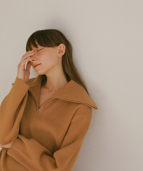【カジュアルなハーフジップニット】・コーディネートを選ばないシンプルなデザイン・インナーのレイヤードもおすすめ・袖口は絞られすっきり着られるデザインゆったりとしたサイズ感でサイドにスリットがあり、重ね着しやすい。タートルとのレイヤードもおすすめです。※商品画像はサンプルのため、色味やサイズ、仕様等に変更が生じる場合がございますので、予めご了承ください。裾幅:53.5cm袖口:12cm
