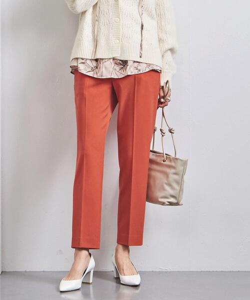 ハイウエストで、ほどよいゆとり感のスリムパンツ。 ■デザイン フロント部分には大きめのボタンを付けてポイントにしています。 ベルトラインの後ろ側にはV字スリットが入っているため、屈んだときの圧迫感が軽減されます。 ■素材 ポリエステルをベースに、レーヨンなどを含んだしなやかな素材で快適な穿き心地です。 毛混でありながらドライなタッチとキックバック性が特徴の素材。 ■コーディネート ゆったりとしたサイズのトップスとの合わせがおすすめです。 軽快なクロップド丈は、パンプスやフラットシューズ、スニーカーとも好相性です。 ============================ 裏地:なし 透け感:なし 生地の伸び:あり 光沢感:なし ケア方法:ドライクリーニング ============================ 【注意事項】 ※商品を使用前に、タグ等に記載されている「取り扱い上の注意書き」、「洗濯表示」を必ずご確認ください。 ※商品画像は、光の当たり具合やパソコンなどの閲覧環境により、実際の色味と異なって見える場合がございます。予めご了承ください。 ※商品の色味の目安は、商品単体の画像をご参照ください。 店舗へお問い合わせの際は、全国のUNITED ARROWS各店舗まで下記の品名/品番をお申し付け下さい。 品名:UWSC P/R/W SLIM 66 品番:15141445012
