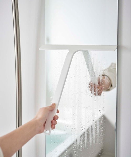 お風呂の壁に強力マグネットで簡単に取り付けができる水切りワイパー。浴室の壁や鏡をカビや水垢から防ぎます。 ワイパー部分がワイドだから、30cmまでの鏡の水切りもひと拭きでスッキリ。壁面など、広範囲に使用したいときも楽ちんです。 柄はコンパクトながら、長めのデザインで浴槽の底や天井、壁の高い位置にも使えます。 収納は、一般的なフッキングはもちろんマグネットでの貼り付けも可能な2way仕様。 マグネットはシリコンに包まれた本体内蔵タイプのため、壁からの取り外しによる擦れ傷の心配もなく、フラットでお手入れしやすくスタイリッシュなデザインを実現しました。 サイズ約 31 × 4.3 × 34.5cm 重 量約 160g 耐冷熱-40/230度