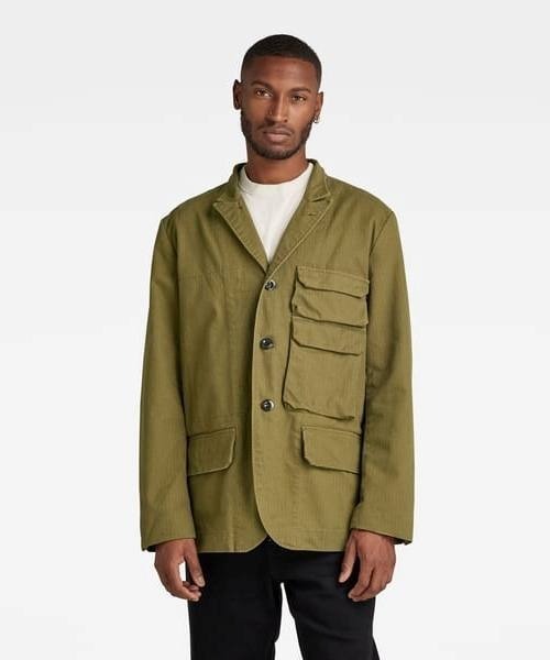 特徴 Stacked Pocket Blazerは、胸に隠しスナップ付きのフラップポケットを備えたブレザー。そのすぐ上にグラフィック刺繍が施されています。さらにウエストにもフラップポケット付き。裏地を付けずに仕上げた、ラペル襟付きのボタン開閉スタイルです。トップのボタンを留めれば立ち襟に。大きな内ポケットにディテール感が漂います。 ストレートフィット 襟を閉じればマンダリン襟、開ければラペル襟 袖口にスリットとボタン 胸にスナップが隠れたフラップポケット フラップ付きウエストポケット 内側:ハンガーループ、内ポケット 素材・生地 FAMOUS BRUSHED HERRINGBONE RECYCLED ORGANIC G-Star RAWアーカイブのビンテージのアーミーユニフォームをイメージした目の細かいファブリック。はっきりしたヘリンボーンの織り目が細かなストライプ柄を生み出しています。オーガニックコットンとリサイクルポリエステルを使ったサステナブルな素材。 細かなヘリンボーン織りファブリック ピーチ加工を施したソフトタッチの素材 65% ポリエステル (リサイクル), 35% オーガニックコットン リサイクルポリエステルは、ペットボトルやアパレル製品など、個人や企業が廃棄した資源を原料にして作られています。これらの原料はリサイクルされなければゴミとして埋められるか焼却されてしまう運命にあるものです。 オーガニックコットンは有毒な殺虫剤や化学肥料を使用せずに育てられたコットンです。オーガニックコットンを栽培することは、土壌の質の向上、水質汚染の防止、生物多様性の保全につながり、さらに水の使用量を最大で60%節減することができます。 ライナーポケット: 50% ポリエステル(リサイクル), 50% オーガニックコットン G-STAR RAWとは 素材や加工、裁断にこだわるデニムブランドとしてオランダで誕生し、デニムに対する可能性を探求し、常識を覆すデザインを発表してきました。デニムならではの魅力を引き出し、工業デザインと職人の手作業によるクラフトマンシップを融合させたデザインが特徴です。 1989年の創設以来、G-STARの哲学である、「Just the Product」は、素材や商品そのものを大切にしていくという精神を反映しています。 《お気に入り登録》でお得な情報をゲット。 ・「商品のお気に入り登録」で再入荷通知や、ラスト通知、セール通知も受け取ることができます。 ・「ブランドのお気に入り登録」で新商品や再入荷など、お得な情報を受け取ることができます。