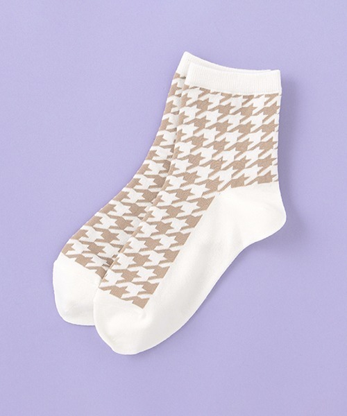 普段使いの強い味方になるおしゃれ見せがばっちりなクルーソックスです。 シックな雰囲気の千鳥柄を上手に取り入れたコーデは、誰もがマネするハイテクニック♪ 無地とのバランスも絶妙で、デザイン性にこだわりが詰まった注目のアイテムです。