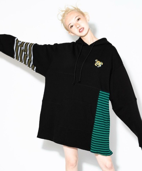 2種類のボーダー生地とスウェットをステッチで切り替えられたフーディ。オーバーサイズなシルエットでユニセックスな着こなしをお楽しみいただける1枚です。 胸元に刺繍で施した、グラフィックDIYアーティストのKOU氏が手掛けたクマもポイント。 【サイズ展開】 ・サイズ2/M ●Candy Stripper/キャンディストリッパー● -BRAND CONCEPT- 遊び心のあるディテール、ポップな色や他にはないグラフィックで個性を放つ。 着る人のセンスと着る人の楽しみ方で変化する無限の可能性を秘めた服を。 誰にもとらわれないあなたらしいコーディネートを♡ 【お買い物をもっとお楽しみ頂くために】 ▼商品のお気に入り登録▼ 完売カラーの再入荷通知や、ラスト1点通知、プライスダウンしたセール通知も受け取れる♪ ▼ブランドのお気に入り登録▼ 新作や再入荷等、いち早くブランドのお得な情報が受け取れる♪