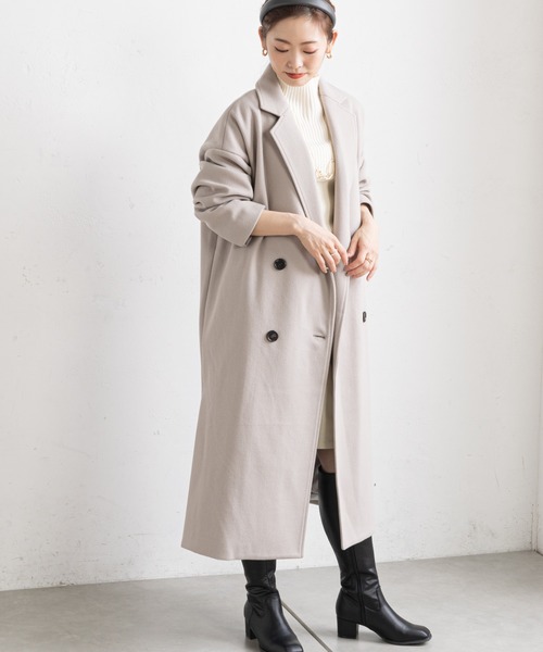 オンオフ着られる! キレイめロングコート 【ポイント】 ●ざっくりとしたサイズ感ながらも美しいシルエットのロングコート ●適度なゆるっと感ときちんと感を兼ね備えた1枚 ●ダブルボタンがクラシカルな雰囲気を加えます ●しっかり長めのロング丈が上品で大人びた印象に ●サイドのスリットが抜け感をプラス ●デイリーなお出かけなどにはもちろん、お仕事やパーティーなどの フォーマルなスタイルにも合わせていただけます 【オススメコーディネート】 ・ハイネックニットを首元から覗かせ、 タイトなナロースカートでスッキリまとめた クラシカルな上品スタイル ・ロングブーツを合わせてトレンド感を取り入れるのも◎ ・オフィスカジュアルやパーティードレスを 着用する際の移動時にも活躍 -------------------------------------------------------------- 生地の厚さ:厚手 伸縮性:なし 透け感:なし 裏地:あり -------------------------------------------------------------- ※商品のお取り扱いに関しましては、商品に付属の アテンションカード、洗濯ネームをご覧ください。 ※撮影場所やお使いのモニター環境により若干お色味が 異なる場合がございます。 特にロケの撮影では明るく見える傾向にございます。 ※サイト上ではフリーサイズの表記ですが、商品タグには Mサイズと表記されている場合がございます。 その場合、ワンサイズでのご用意となりますのでサイズミス などではございません。詳しいサイズはサイズスペックを ご確認いただきますようお願い致します。 ※サイト上でのカラー名とお届けした商品に記載されている カラー名が異なる場合がございますので予めご了承ください。 --------------------《Information》-------------------- 【商品のお気に入り登録】 →カートに入れる右側の【♡マーク】をクリック! 完売カラーの再入荷通知やラスト1点の通知、 セールの通知を受け取ることができます。 【ブランドのお気に入り登録】 →ブランドタグのページから【♡お気に入りショップに追加】 をクリック! 新商品や再入荷など、ブランドのお得な情報を いち早く受け取ることができます。 是非ご登録頂き、お買い物をお楽しみください◎ <返品・キャンセルについて> ・着用・洗濯後の返品は致しかねます。 ・商品到着後、着用前に商品を確認して頂きますようお願い致します。