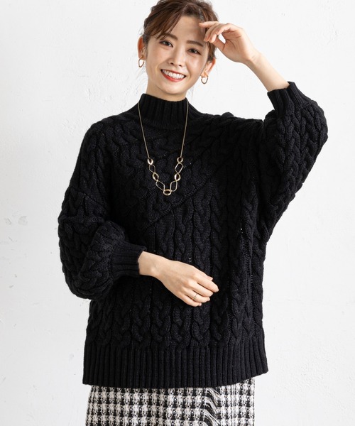 切替編地が目を引くケーブルニット 【ポイント】 ●1枚着るだけで存在感アリな主役ニット ●ざっくり編み込まれた立体ケーブルが目を引くデザイン ●特徴的な編地切り替えがさりげないアクセントに ●ほど良いゆるっと感がオトナな抜け感をプラス ●襟・袖・裾の太めリブがメリハリを加えます 【オススメコーディネート】 ・ゆったり大きめシルエットなので、 タイトスカートやテーパードパンツで シルエットにメリハリを加えたスッキリコーデ ・サラッと落ち感のあるスカートを合わせて、 リラックスカジュアルな旬顔コーデも◎ -------------------------------------------------------------- 生地の厚さ:やや厚手 伸縮性:ややあり 透け感:あり 裏地:なし 洗濯方法:ドライクリーニング可 -------------------------------------------------------------- ※商品のお取り扱いに関しましては、商品に付属の アテンションカード、洗濯ネームをご覧ください。 ※撮影場所やお使いのモニター環境により若干お色味が 異なる場合がございます。 特にロケの撮影では明るく見える傾向にございます。 ※サイト上ではフリーサイズの表記ですが、商品タグには Mサイズと表記されている場合がございます。 その場合、ワンサイズでのご用意となりますのでサイズミス などではございません。詳しいサイズはサイズスペックを ご確認いただきますようお願い致します。 ※サイト上でのカラー名とお届けした商品に記載されている カラー名が異なる場合がございますので予めご了承ください。 --------------------《Information》-------------------- 【商品のお気に入り登録】 →カートに入れる右側の【♡マーク】をクリック! 完売カラーの再入荷通知やラスト1点の通知、 セールの通知を受け取ることができます。 【ブランドのお気に入り登録】 →ブランドタグのページから【♡お気に入りショップに追加】 をクリック! 新商品や再入荷など、ブランドのお得な情報を いち早く受け取ることができます。 是非ご登録頂き、お買い物をお楽しみください◎ <返品・キャンセルについて> ・着用・洗濯後の返品は致しかねます。 ・商品到着後、着用前に商品を確認して頂きますようお願い致します。