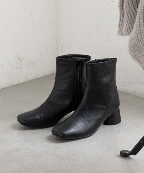 ウッドヒールがオトナなシンプルショートブーツ 【ポイント】 ●ウッド調のヒールが柔らかい抜け感を与えるこなれデザイン ●丸みのあるチャンキーヒールで女性らしい印象に ●スクエアトゥが今年らしいトレンド感をプラス ●大人びた品のあるカラー展開が高見えのポイント ●中はふんわりクッション性抜群なので、 長時間履いても疲れにくい設計 ●パンツ・スカートどちらと合わせても様見えする一足です ※撮影場所やお使いのモニター環境により若干お色味が 異なる場合がございます。 特にロケの撮影では明るく見える傾向にございます。 -------------------------------------------------------------- 【スタッフ着用コメント①】 身長155cm / 体型:標準 / 普段サイズ:23.5~24.5 着用サイズ:L 着用カラー:ブラック 中がクッションになっているので、 とにかく履き心地がとっても良いです!! ヒールも低めなので、1日履いていても疲れにくいです! 24cmを履いている私でLサイズです。 中がクッションなので、 LLサイズでもぶかぶかではなかったです。 もし冬に分厚めの靴下をはいたりするなら ワンサイズあげてもいいかなと思います◎ 【スタッフ着用コメント②】 身長168cm / 体型:標準 / 普段サイズ:24.5~25.5 着用サイズ:LL 着用カラー:アイボリー 高身長でも履きやすいブーツ◎ 25cmぐらいのサイズ間でLLが丁度でした◎ ヒール高くないので普段ヒールを 履かない方でもチャレンジしやすい!! --------------------《Information》-------------------- 【商品のお気に入り登録】 →カートに入れる右側の【♡マーク】をクリック! 完売カラーの再入荷通知やラスト1点の通知、 セールの通知を受け取ることができます。 【ブランドのお気に入り登録】 →ブランドタグのページから【♡お気に入りショップに追加】 をクリック! 新商品や再入荷など、ブランドのお得な情報を いち早く受け取ることができます。 是非ご登録頂き、お買い物をお楽しみください◎ <返品・キャンセルについて> ・着用・洗濯後の返品は致しかねます。 ・商品到着後、着用前に商品を確認して頂きますようお願い致します