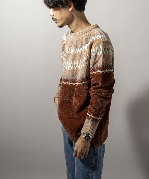 タオル地のような柔らかい肌触りのモール糸を使った求心柄ニット。 ウール特有のチクチク感が無いのでスウェット感覚で着用いただけるアイテムです。 冬ムードをグッと盛り上げてくれるノルディック調の柄ニットは今欲しい1枚。 ラグラン仕様がストレスフリーな着心地、ルーズ過ぎないシルエットは上品な印象を与えてくれます。 男女問わず着用していただけるユニセックス対応デザインです。 【スタッフ着用コメント】 身長:170cm/体重:52kg/体型:細身/普段サイズ:M/着用サイズ:M ニット調のプルオーバー。ウール特有のチクチク感がなく、もっちりとした質感で肌触りがいいです。 モッズコートやステンカラーコート、キルティングジャケットなど、どんなアウターでも相性◎です。 【GLOSTER/グロスター】 『男性であること、女性であること、日本人であること、人間であること。』 自由に生きる為に必要な洋服であり、着る人を主体と考えたプロダクトを提案します。 普遍的な洋服の礎であるワーク・ミリタリーをベースにエッセンスとして艶を加えて形にします。 洋服の原型を生かしながらもひねりの効いた素材を使い、ディテールは歴史の焼き増しではなく新たな価値観を創造します。 ※お取扱い上のご注意 アテンションタグを必ずご確認の上、着用又はお取り扱いください。 ※店頭及び屋外での撮影画像は、光の当たり具合で色味が違って見える場合があります。 ※商品画像に関しては出来る限り忠実に表示出来るよう努めておりますが、お客様がご利用のモニターの設定及び特性により、実際の商品と比較し色味に若干の誤差が生じる場合があります。 ◇商品のお気に入り登録◇ 【お気に入りに登録】を是非ご活用ください。 再入荷の通知や、ラスト1点の通知、セールの通知がいち早く届きます。 ◇ブランドのお気に入り登録◇ 新商品や再入荷など、いち早くブランドのお得情報が届きます。