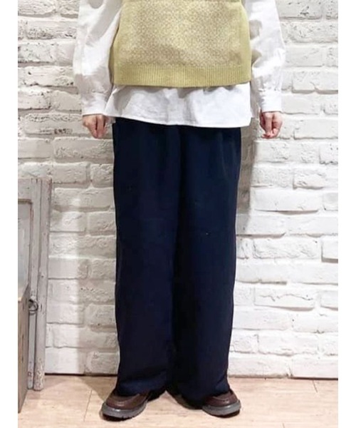 さりげないAラインシルエットとドローコードで旬服をラフに着まわせるパンツ。 ウール混起毛で寒い冬でも暖かく、さらりとした肌ざわりで着心地も抜群です。 程よいワイド感が足のラインを綺麗に魅せてくれ、足長効果も期待できます。 さらりと着ても落ち感あるこなれコーデを可能にした一枚です。 水洗い不可、石油系ドライクリーニング。