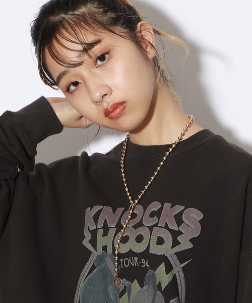 シンプルながら大きめのボールチェーンが程良い存在感がありスウェットやニットのアクセントとにするとトレンド感がUP。1連で付けたり、留めて雰囲気を変えて使えるのも特徴です。幅広いシーンで活躍してくれ、シーズンレスでお使い頂けます。※撮影環境により、光の当たり具合で色味が違って見える場合があります。あらかじめご了承下さい。