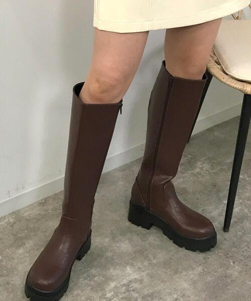 ★WEB限定アイテム★ 2021 秋冬アイテム ミニ丈のボトムスにもバランス良く合わせられるロングブーツ。脚長効果抜群のボリュームソールがポイントです。安定感のあるヒールで歩きやすく、サイドジップ付きで脱ぎ履きも楽ちん。シンプルなデザインで普段使いはもちろん、お出かけシーンにもおすすめです。ベーシックで合わせやすいカラーがラインナップ。・重量:約506g(片足Mサイズ) Mサイズ(23~23.5cm)