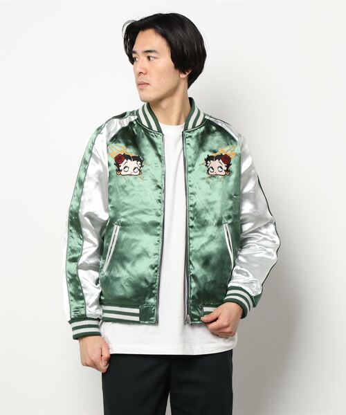 大きな瞳とふっくらした赤い唇が印象的でキュート&セクシーな女の子、BETTY BOOP(ベティー・ブープ)とLOWBLOW KNUCKLEのコラボシリーズから、総刺繍で施されたリバーシブルスカジャンが登場しました。高品質なレーヨン生地を表面に使用し、素材のチョイスや刺繍糸に至るまでこだわり逸品は、レーヨン素材特有の経年変化を楽しみながら、いつまでも永く着ていただきたい一枚に仕上げる事が出来ました。【POINT】日本の首都である《東京》を舞台に、かつて横須賀ジャンパー、スーベニアジャケットと呼ばれたミリタリーアイテム《スカジャン》をBETTYBOOPのポップカルチャーでオマージュしました。前後共に全てのデザインは総刺繍で施されているのですが、こちらのスカジャン、実はミリタリーアイテムの定番『MA-1フライトジャケット』とのリバーシブルになっております。スカジャン面は信頼のある高品質なレーヨン素材、MA-1面は耐摩擦性に優れたナイロン素材をベースボディ使用しています。一つのアイテムで2倍楽しめるこちらのアイテムは男女問わずオススメ。メンテナンスフリーでラフに羽織って、何倍も楽しんじゃって下さい。