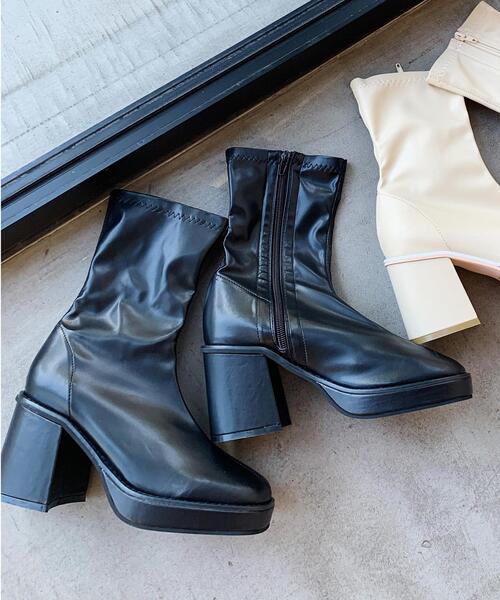 ★WEB限定アイテム★ スカートにもパンツにも合わせやすいミドル丈のブーツ。足首に沿うシルエットながらもやわらかくて伸縮性があるのでフィット感も良く、快適な履き心地。太めの安定感あるヒールで疲れにくくなっています。内側にはファスナーが付いているので脱ぎ履きも楽ちん。シンプルなデザインで普段使いはもちろん、お出かけシーンにもおすすめです。・重量:約380g(片足Mサイズ)Mサイズ(23~23.5cm)