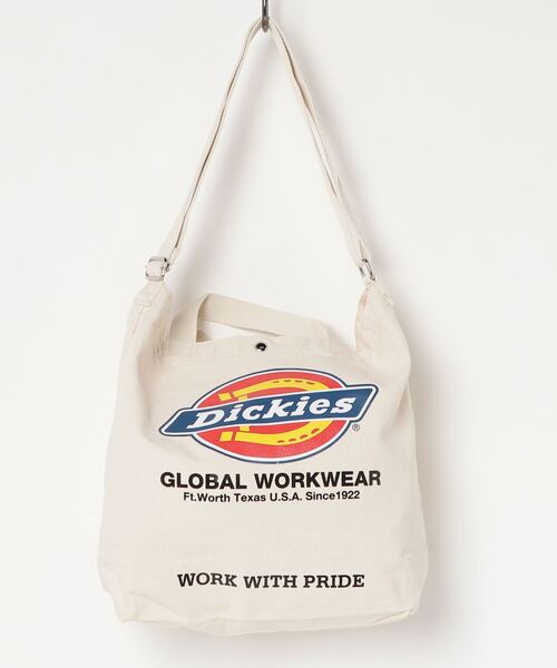”ワークウェアブランドならではのタフなT/Cキャンバスバッグ”~デザイン・ディテール~短いハンドルでハンドバッグとして、ショルダーストラップを使用し肩からかけ、ショルダーバッグとして、2WAYでご使用が可能です。ナチュラルなアイボリーカラーにDKロゴをメインデザインとしたタイポグラフィプリントが施されています。A4サイズがすっぽり入るサイズ感で、収納力も抜群!カジュアル使いから通学バッグとしてもオススメで、性別問わずヘビーユーズできる大定番アイテムです。~ファブリック~アメカジの大定番である高い耐久性と軽さが魅力のT/Cキャンバスを全面に使用。~スペック~開閉:マグネットボタン収納サイズ:A4内側収納:ポケット×1容量:約12L【Dickies/ディッキーズ】アメリカ・テキサス州の小さなオーバーオール会社からスタート。そこから世界中で愛用される一大ブランドへと成長した背景には、創業から続く徹底した機能性へのこだわりがあります。西海岸のスケーターたちが丈夫で価格も手ごろな「874」を愛用したことで、各分野のアーティストへも浸透。世界各地のカルチャーシーンへと飛び火し、カジュアルファッションのブランドとしての地位を確立。ヨーロッパ、アジア、南米、アフリカなど世界110ヵ国以上でDickiesブランドの商品が販売されています。【ALWAYS GOOD TIME SELECT】[日々の生活を気持ち良く過ごす] 現代における重要なファクター。長年に渡って愛され続けたWEARやGOODS、今を構築するWEARやGOODS。ファッションカルチャーの歴史にフォーカスし現代的にセレクトし提案するセレクトショップ。
