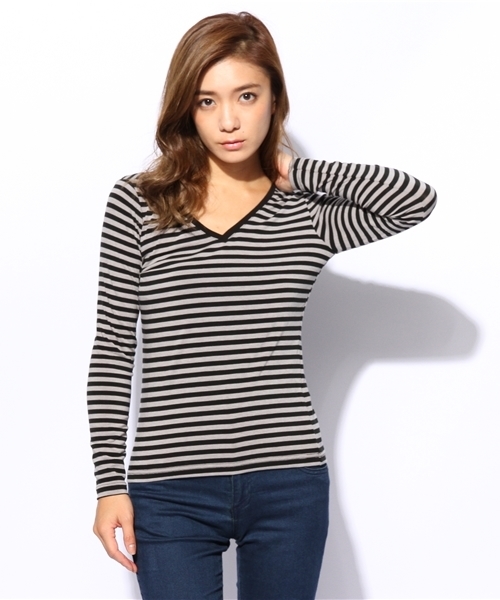 優れた保温性を発揮する機能性素材、ミリオンホットベア天竺を使用した長袖のVネックプルオーバーです。薄手でフィット感があるのでインナーとして使用した際に、もたつきにくくすっきりと決まるのが好ポイント。これからの季節に何枚あってもうれしい優秀アイテムです。modelH167 B82 W59 H86 着用サイズ:SMALLmodelレディッシュグレー H160 B82 W58 H83 着用サイズ:SMALLmodelホワイト系その他 H160 B80 W58 H85 着用サイズ:SMALL