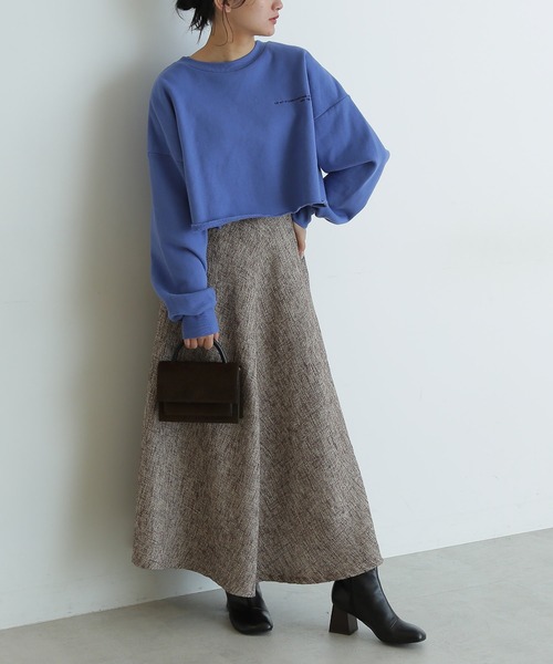存在感バツグンなミックスツイードフレアスカート。ウエストベルト幅を広めにとっていたり、Vカットを施していたりと、女性らしいくびれをメイクします。裾に向かってドラマティックに広がるフレアシルエットがポイントです。フェミニンなニット合わせから、スウェットアイテムと合わせてカジュアルダウンにも着回しできます。※こちらの商品はSサイズの展開がございます。◆サイズ目安◆Sサイズ→身長153cm~156cm ウエスト60cm~62cm