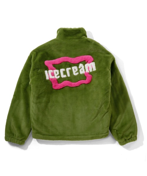 ゆったりとしたシルエットが特徴のフェィクファー素材を使用したジャケット。肌触りの良いフェィクファーに程よく中綿が入り保温性も高いアイテムです!バックには、アイコニックなICECREAMロゴが大胆に施されたデザイン。フロントの胸元のICECREAMのラバーパッチもアクセント!