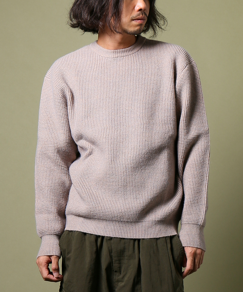 ベーシックな大人のプルオーバーニット タック編みで仕上げたシンプルなセーター スッキリとしたシルエットはインナー使いもおススメ しっかりとした保温性のある肌触りの良い素材が大人な印象に 一枚あると非常に便利なニットです モデルサイズ:身長:179cm 着用サイズ:L 本体:手洗い可能