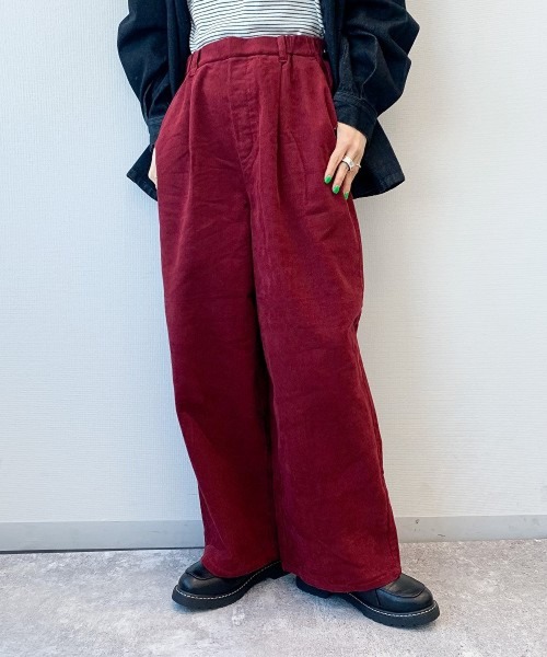 ーーー 細畝でちょうどよい太さのセミワイドパンツ。 ウエストの後ろ側がゴムになっているのでストレスフリーな穿き心地です◎ ベーシックなカラーに加えこっくりとしたボルドーカラーは鮮度アップの着こなしが楽しめます。 ーーー